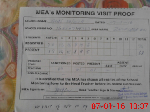 | Attendance Register | Head Teacher | MEA with School | Visit Proof |