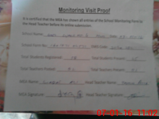 | Certified that this School was Inspected by the Undersigned MEA/DMO Today and the Information Stated Above is as Per Record. | |||||