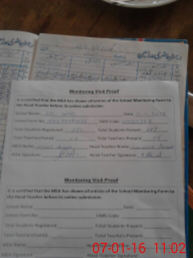 | Attendance Register | Head Teacher | MEA with School | Visit Proof |