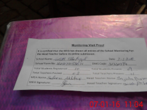 | Attendance Register | Head Teacher | MEA with School | Visit Proof |