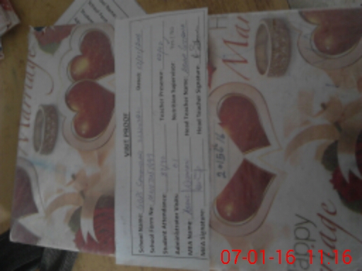 | School Visited by School Health & Nutrition Supervisor (No. of Visits) | 1 | Name1: | NAJMUL HASSAN | Name2: | NIL |