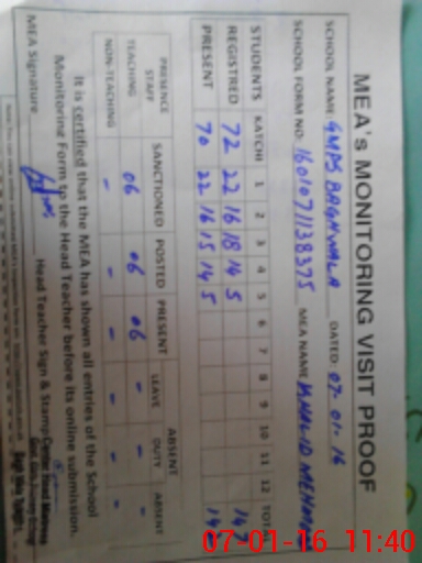 | Certified that this School was Inspected by the Undersigned MEA/DMO Today and the Information Stated Above is as Per Record. | |||||