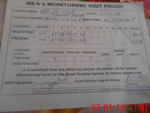 | Certified that this School was Inspected by the Undersigned MEA/DMO Today and the Information Stated Above is as Per Record. | |||||
