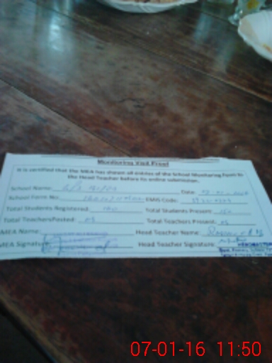 | Attendance Register | Head Teacher | MEA with School | Visit Proof |