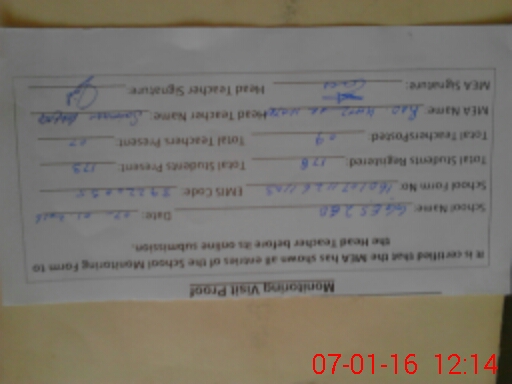 | Attendance Register | Head Teacher | MEA with School | Visit Proof |