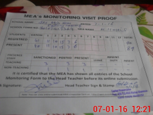 | Attendance Register | Head Teacher | MEA with School | Visit Proof |