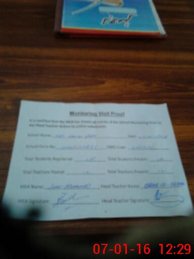 | Attendance Register | Head Teacher | MEA with School | Visit Proof |