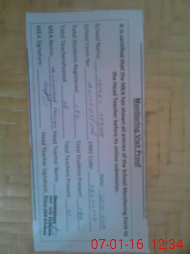 | Certified that this School was Inspected by the Undersigned MEA/DMO Today and the Information Stated Above is as Per Record. | |||||