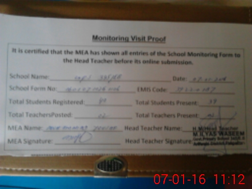 | Certified that this School was Inspected by the Undersigned MEA/DMO Today and the Information Stated Above is as Per Record. | |||||