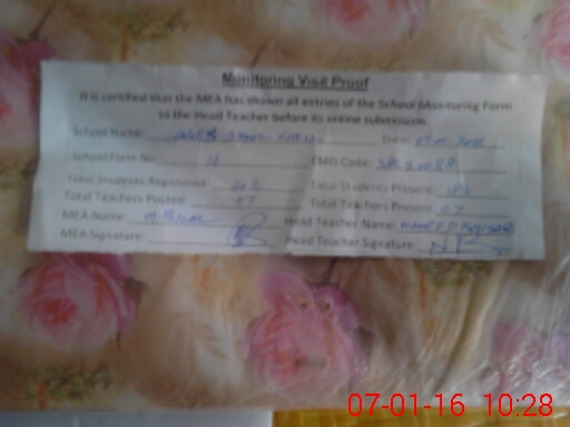 | Certified that this School was Inspected by the Undersigned MEA/DMO Today and the Information Stated Above is as Per Record. | |||||