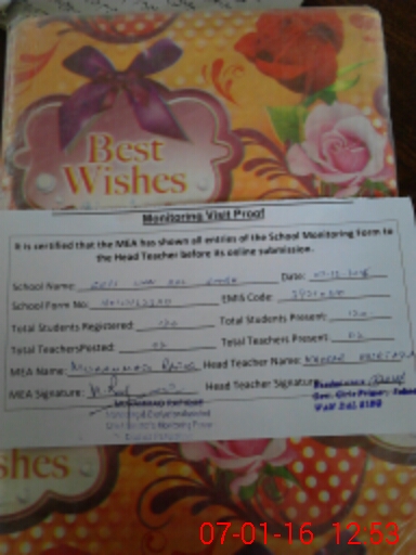 | Attendance Register | Head Teacher | MEA with School | Visit Proof |