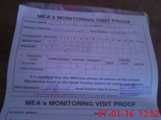 | Attendance Register | Head Teacher | MEA with School | Visit Proof |