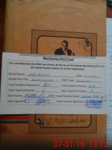 | Certified that this School was Inspected by the Undersigned MEA/DMO Today and the Information Stated Above is as Per Record. | |||||