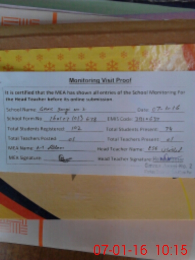 | Certified that this School was Inspected by the Undersigned MEA/DMO Today and the Information Stated Above is as Per Record. | |||||