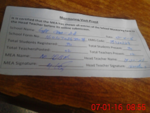 | Certified that this School was Inspected by the Undersigned MEA/DMO Today and the Information Stated Above is as Per Record. | |||||