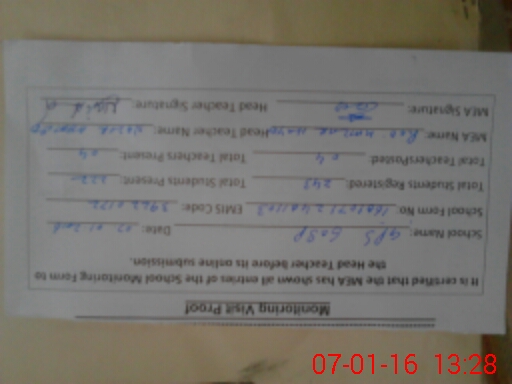 | Certified that this School was Inspected by the Undersigned MEA/DMO Today and the Information Stated Above is as Per Record. | |||||