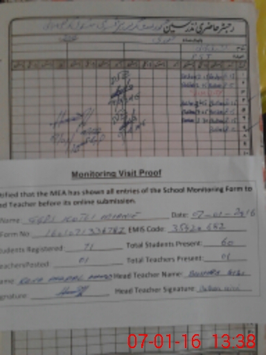 | Certified that this School was Inspected by the Undersigned MEA/DMO Today and the Information Stated Above is as Per Record. | |||||
