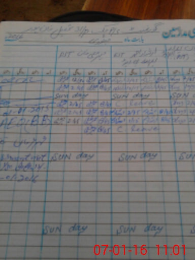 | CNIC | Full Name | Designation | R/C | Absence During Last Calender Month |