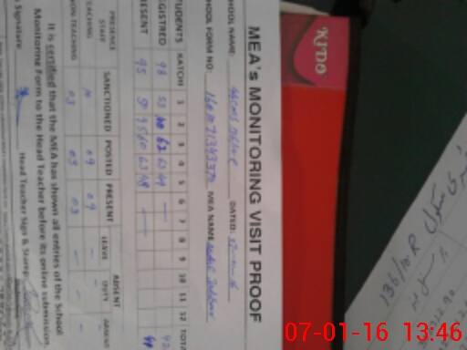 | Attendance Register | Head Teacher | MEA with School | Visit Proof |