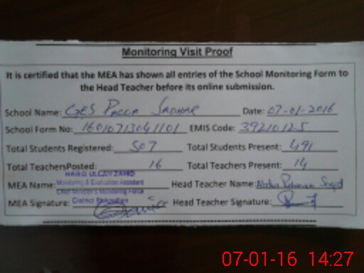| Certified that this School was Inspected by the Undersigned MEA/DMO Today and the Information Stated Above is as Per Record. | |||||