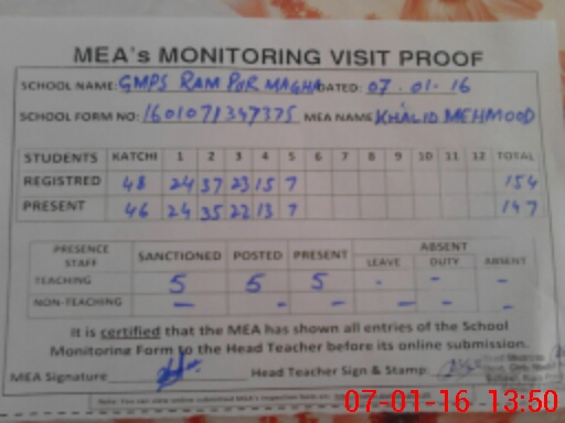 | EMIS Code: 36430399 | Name of School: GMPS RAM PUR MAGHA, TULAMBA | |||