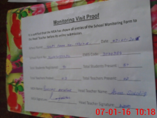 | Attendance Register | Head Teacher | MEA with School | Visit Proof |