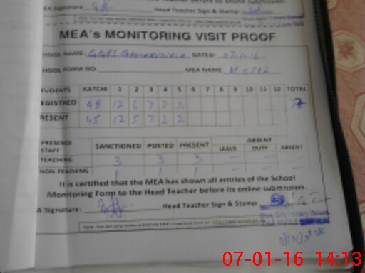 | Attendance Register | Head Teacher | MEA with School | Visit Proof |