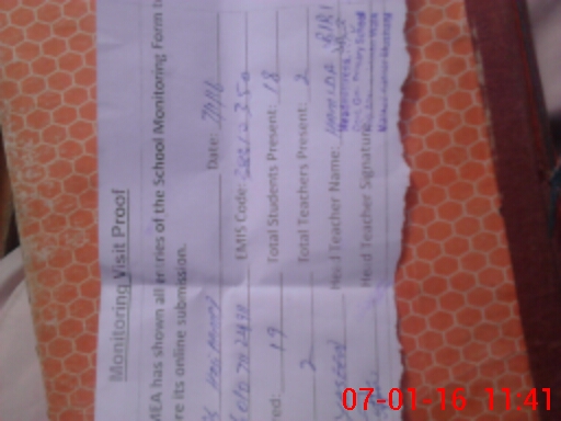 | Attendance Register | Head Teacher | MEA with School | Visit Proof |