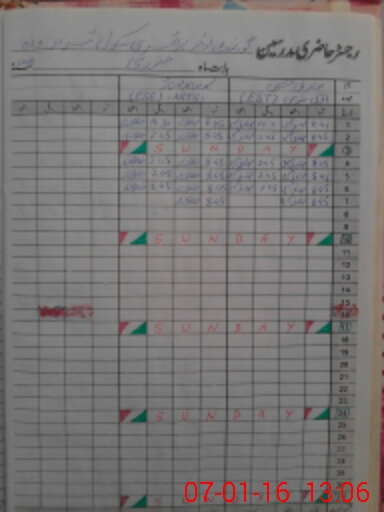 | CNIC | Full Name | Designation | R/C | Absence During Last Calender Month |