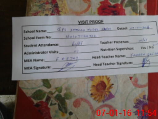 | Attendance Register | Head Teacher | MEA with School | Visit Proof |