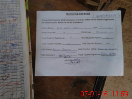 | Attendance Register | Head Teacher | MEA with School | Visit Proof |