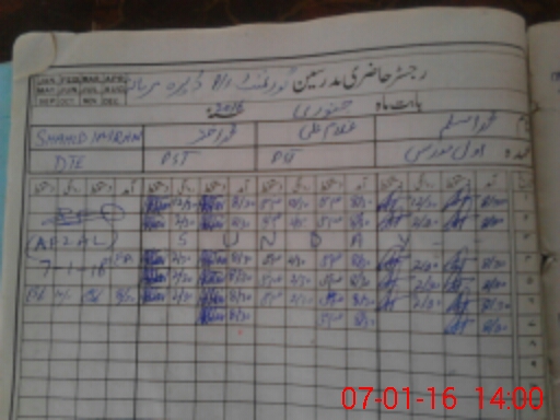 | CNIC | Full Name | Designation | R/C | Absence During Last Calender Month |