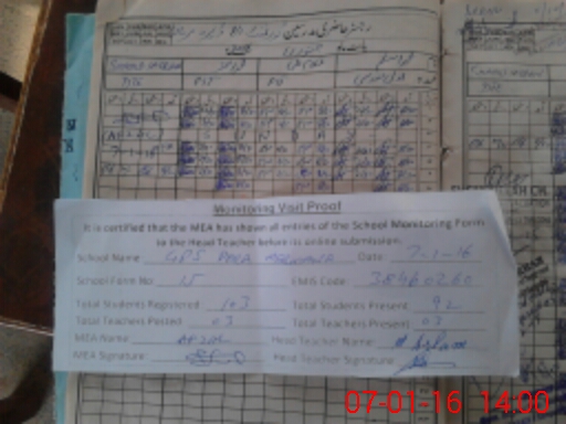 | Attendance Register | Head Teacher | MEA with School | Visit Proof |