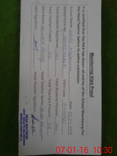 | Certified that this School was Inspected by the Undersigned MEA/DMO Today and the Information Stated Above is as Per Record. | |||||