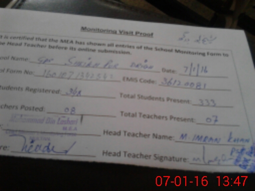 | Certified that this School was Inspected by the Undersigned MEA/DMO Today and the Information Stated Above is as Per Record. | |||||
