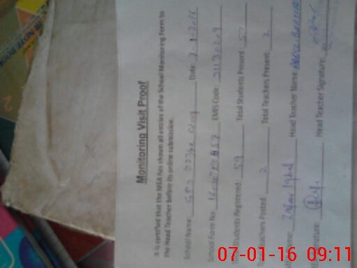 | Attendance Register | Head Teacher | MEA with School | Visit Proof |