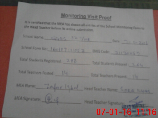 | Certified that this School was Inspected by the Undersigned MEA/DMO Today and the Information Stated Above is as Per Record. | |||||