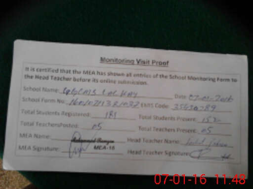 | Certified that this School was Inspected by the Undersigned MEA/DMO Today and the Information Stated Above is as Per Record. | |||||