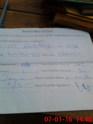 | Attendance Register | Head Teacher | MEA with School | Visit Proof |