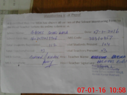 | Certified that this School was Inspected by the Undersigned MEA/DMO Today and the Information Stated Above is as Per Record. | |||||