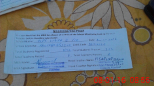 | Attendance Register | Head Teacher | MEA with School | Visit Proof |