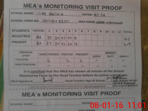 | Attendance Register | Head Teacher | MEA with School | Visit Proof |