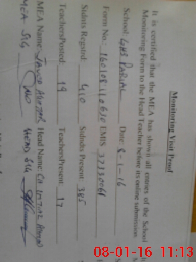 | Certified that this School was Inspected by the Undersigned MEA/DMO Today and the Information Stated Above is as Per Record. | |||||