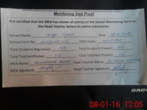 | Certified that this School was Inspected by the Undersigned MEA/DMO Today and the Information Stated Above is as Per Record. | |||||