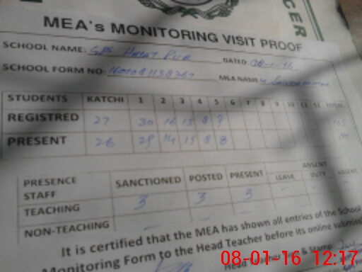 | Attendance Register | Head Teacher | MEA with School | Visit Proof |