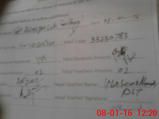 | EMIS Code: 33230783 | Name of School: GPS GULBERG ALLAH YAR JUTA | |||