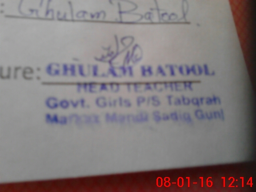 | Name: ME**** AK**** Designation: (School Headmaster's/Headmistress's) PST Phone/Cell Number: 03**** |