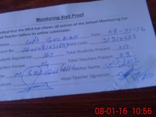 | Attendance Register | Head Teacher | MEA with School | Visit Proof |