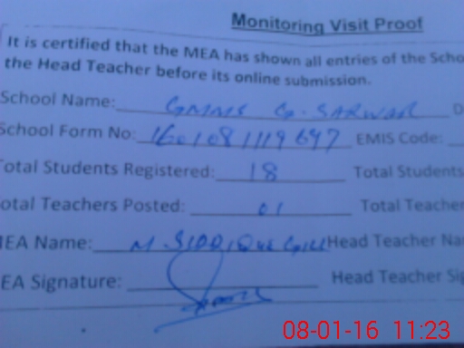 | EMIS Code: 31310731 | Name of School: GPS GHULAM SARWAR SHAH | |||