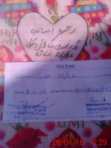 | School Visited by School Health & Nutrition Supervisor (No. of Visits) | 2 | Name1: | Patras Ghori | Name2: | |